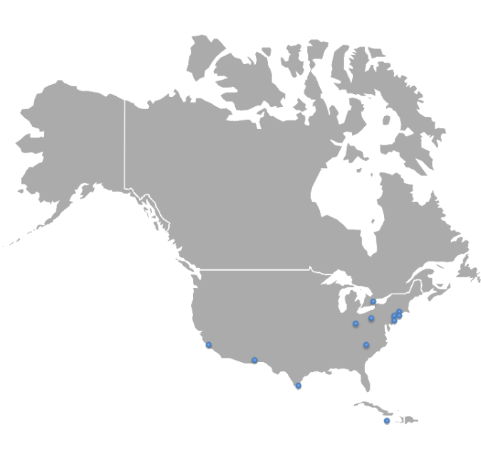 | Canadà 1975 Toronto Estats Units 1947 Rock Hill 1953 Monterey 1967 Pharr | 1968 Pittsburgh 1988 Brooklyn 1998 Raritan 2000 Philadelphia 2007 New York 2017 Cincinnati 2024 Washington D.C. 2024 Trenton | Jamaica 2014 Puerto Antonio |