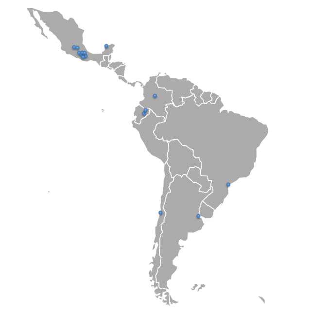 | Argentina 2007 Mercedes Brasil 1996 Saõ Paulo Chile 1966 Villa Alemana | Colombia 1830 San Juan de Pasto 1892 Ipiales 1952 Bogotá Mèxic 1669 Puebla 1697 México – La Profesa | 1712 San Miguel de Allende 1767 Orizaba (refundada l’any 1974) 1775 Guanajuato 1838 León 1966 Tlalnepantla 1973 México – San Pablo 1995 México – NS de la Paz 2011 Mérida |